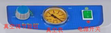 面板介紹(如圖2所示),機器面板依次為真空調節旋鈕,真空表和電源開關,電源開關是手動控制電源的開關,真空調節旋鈕可以調節真空吸力的大小,指針式真空表直觀顯示真空度。