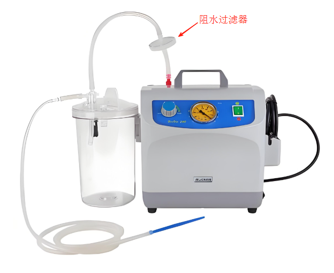 為防止液體倒吸進入真空泵,建議在廢液瓶和真空泵之間鏈接阻水過濾器,以防止抽吸過程中液體隨著氣流進入真空泵,長時間的累積,導致真空泵內部軸承生銹卡住。連接方法如圖4所示。另外注意Biovac240主機背后有散熱風扇,在使用過程中應禁止液體灑入,導致機器短路故障。建議將真空泵放置在安全柜或實驗臺下方,遠離一切可能接觸到液體的環境。如不慎將液體灑入風扇,應立即關機,然后聯系客服人員。